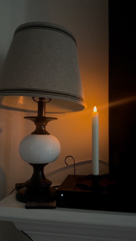 I got wrecked this morning. I woke up earlier to read the Bible and then decided to go back to bed. Everyone in the house was still asleep and no one had gotten up yet. When I woke up for the second time I had gotten in the shower, got completely dressed before Mark was even out of bed and then when he was in the shower, I went to the living room. And everyone was still asleep. But I noticed that there was one single pillar candle that’s battery operated that was lit up on our mantle. A couple nights before I had put up all the Christmas decorations. No one had turned that candle on, but it was shining. I believe this is in direct correlation to my prayer. I had asked the Lord, “What does it mean to simplify? That is my word for 2026. What does it mean to simplify?” And when I saw that candle, the scripture in Matthew 5:16 came to mind. “Let your light so shine before men that they may see your good works and glorify your Father in heaven.” All around was dark, no other Christmas decorations were shining, but the eye was drawn to the one candle lit. That is the “simplify.” That I would let my light shine before men that they would see my good works and glorify my Father, which is in heaven.
